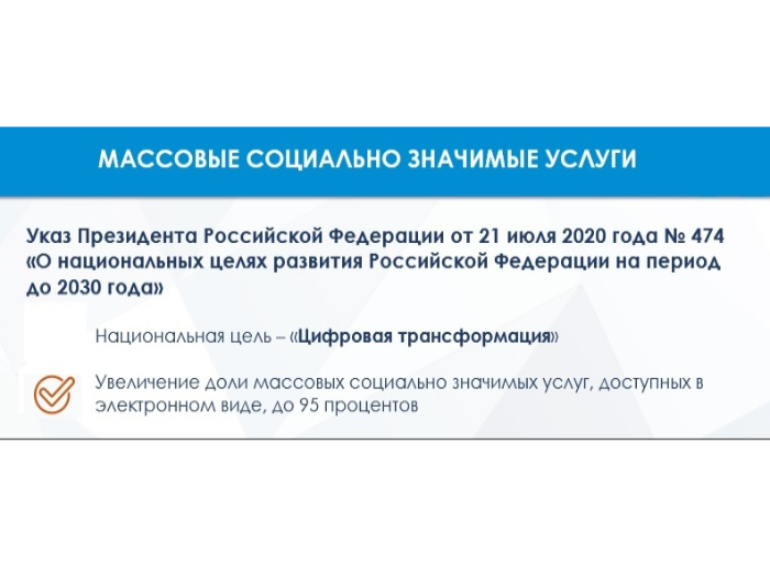 Проект перевода массовых социально значимых услуг в электронный формат на территории Ростовской области реализуется в рамках Указа Президента Российской Федерации «О национальных целях развития Российской Федерации на период до 2030 года», нацпрограммы «Цифровая экономикаРоссийской Федерации» и регионального проекта «Цифровое государственное управление».